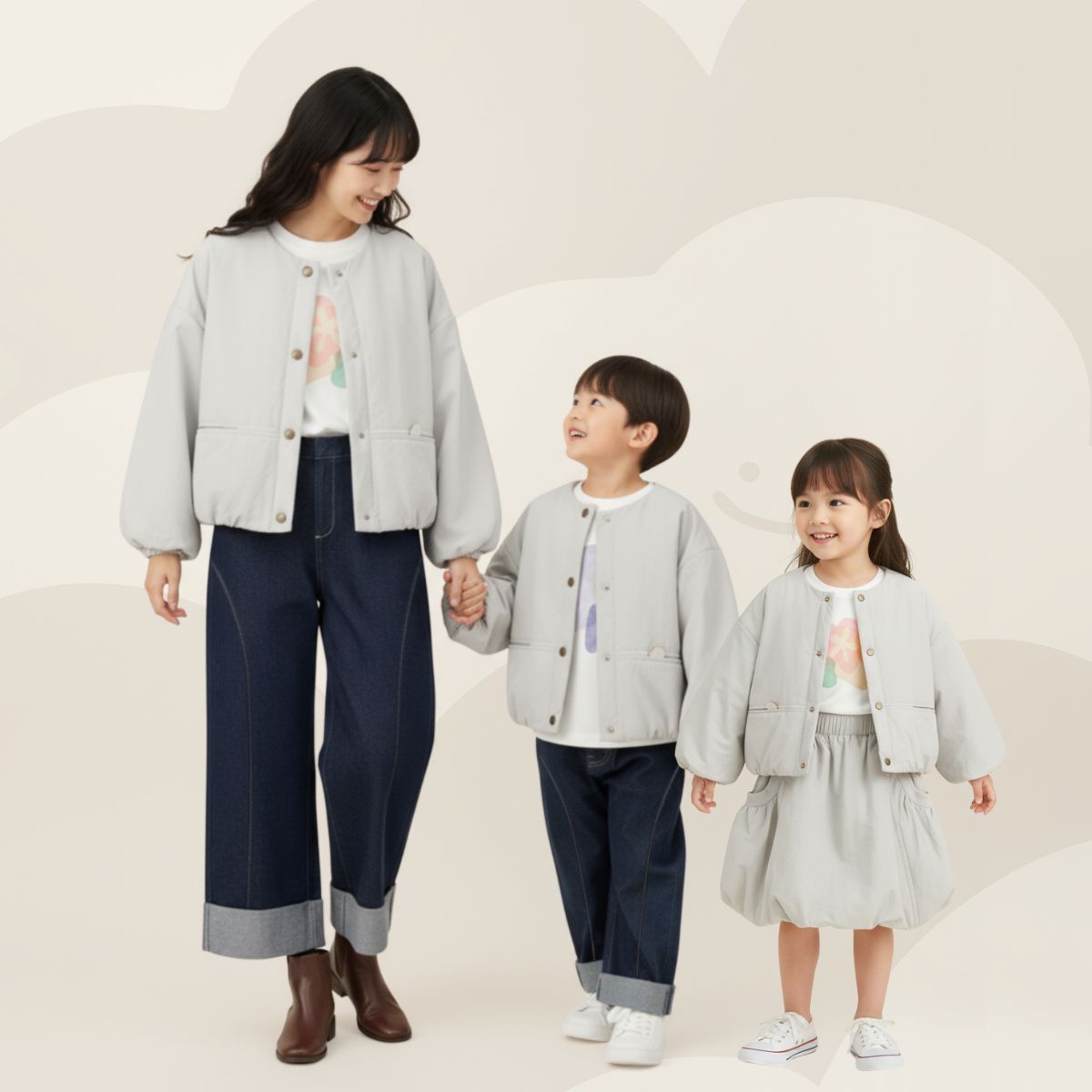 家族でおそろいのプリント、心地よいアクセサリー、厳選ギフトセット🎁、そして楽しい絵本📚 — お子さまと一緒に成長を楽しむすべてのアイテム。