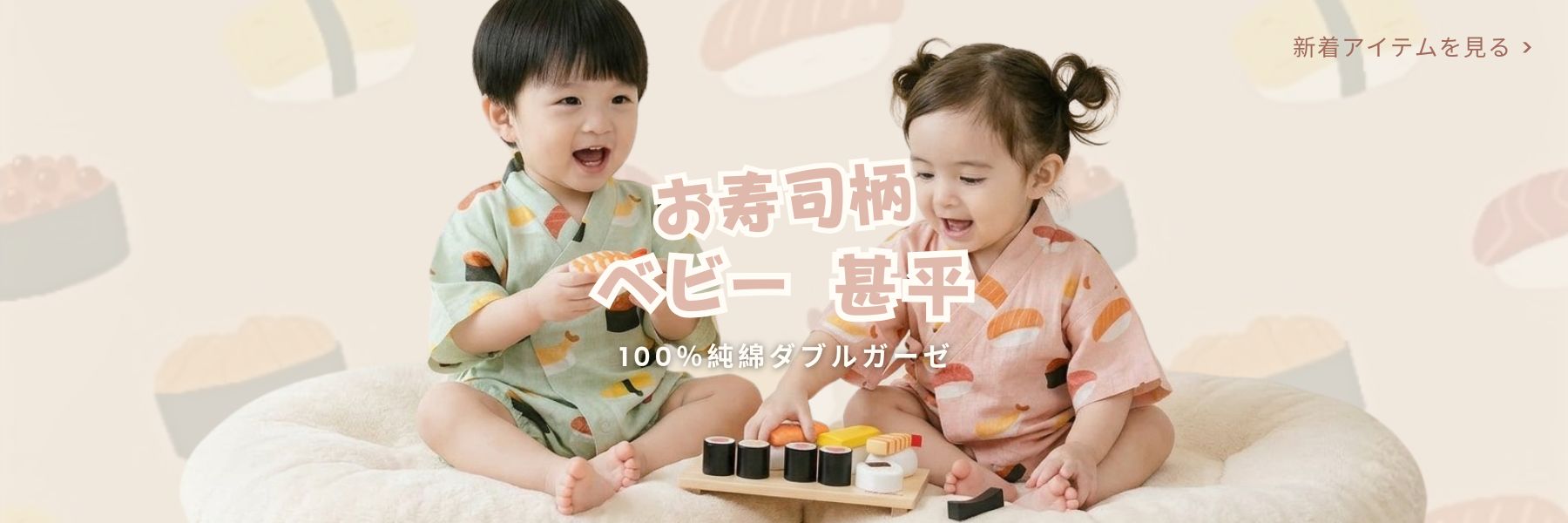 予約注文:お寿司柄 ベビー 甚平 ロンパース - 小豆色