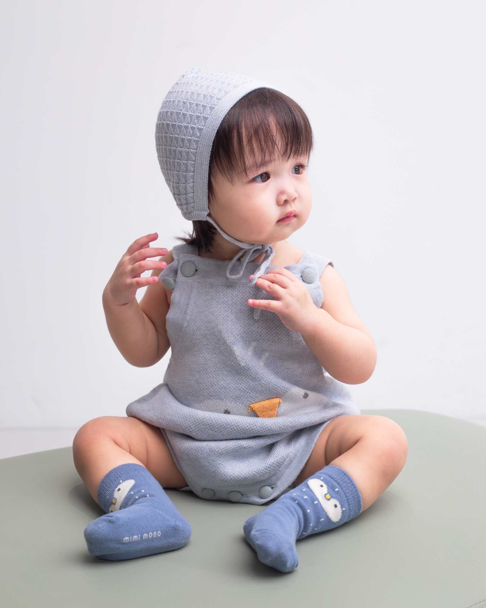 This pair of socks is the reimagined version of our in-house animal design – Lala the Penguin Baby Romper and Sweatshirt.